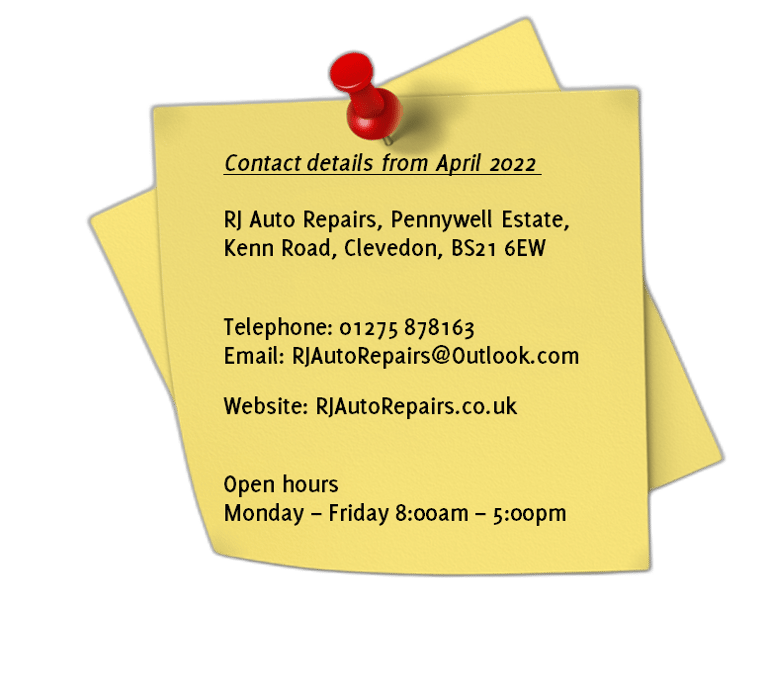 As of April 4th 2022 our new address will be RJ Auto Repairs, Pennywell Estate, Kenn Road, Clevedon, BS21 6EW.